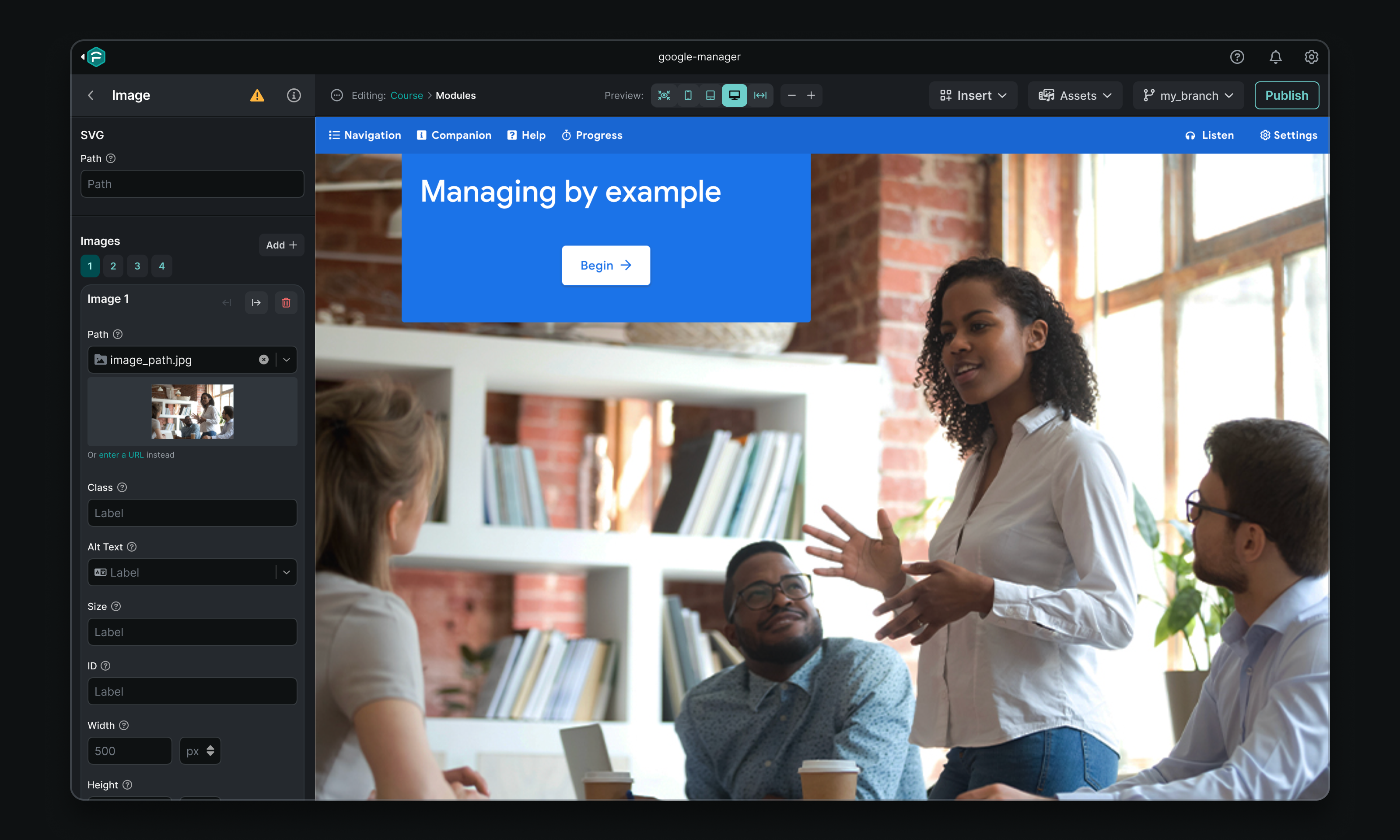 Forge had long since moved away from being a code editor — we needed to embrace it as a tool for creation using our design system. Courses rely heavily on utility classes generated from system variables in order to apply or override theme styles; forcing Forge users to memorize and apply class names manually was doing them a disservice.