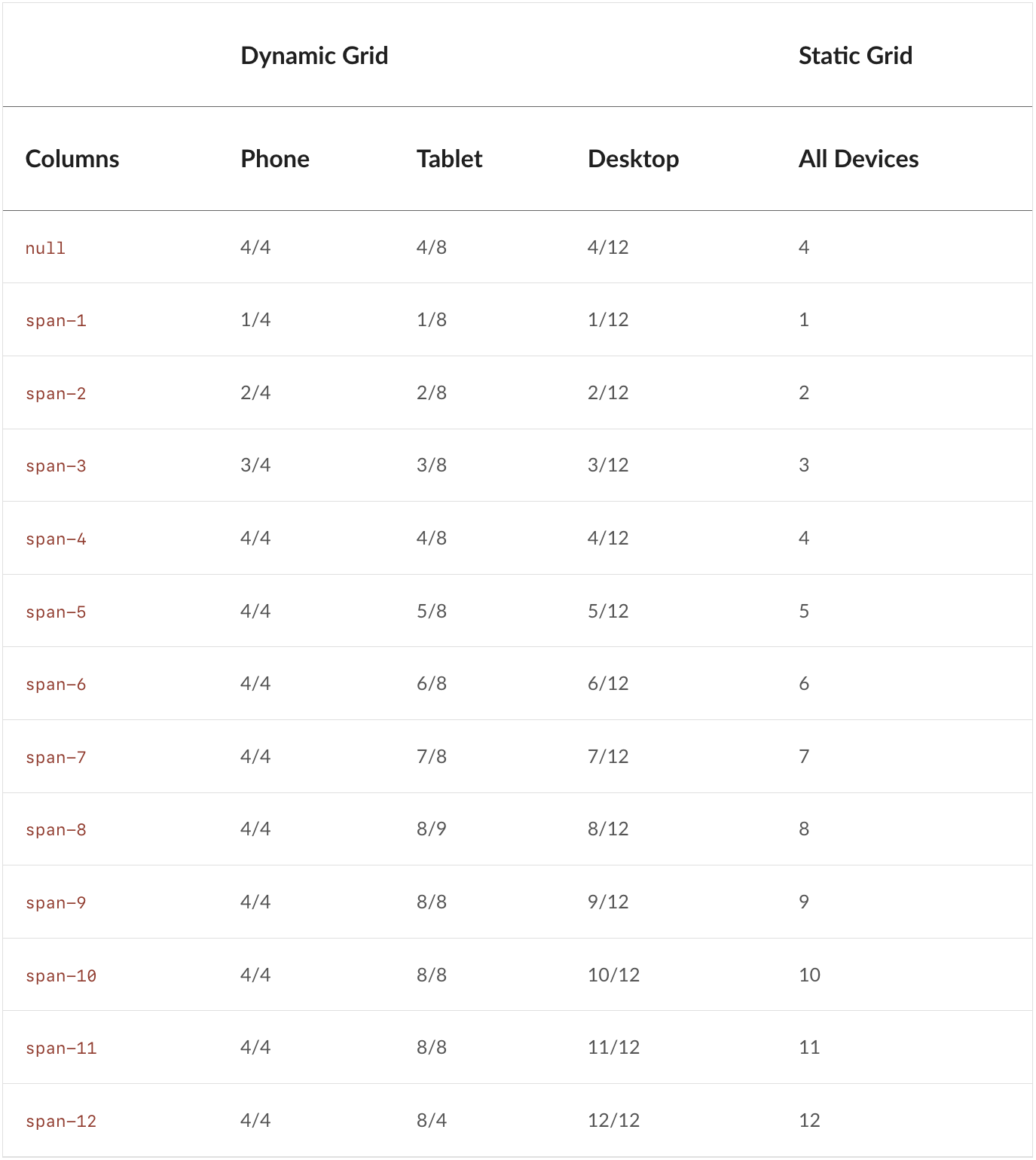 To replace them, we created two CSS Grid layouts: a classic Bootstrap-style 12-column grid for full flexibility, and another inspired by Material Design 2 that dynamically renders different columns per breakpoint (4 on mobile, 8 on tablet, and 12 on desktop).